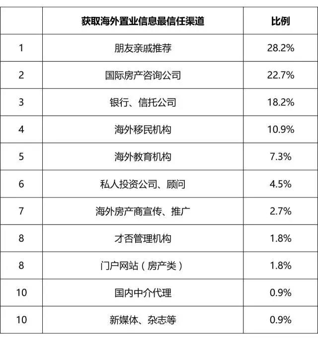 早期中国高净值人群对于海外置业投资知之甚少,主要依靠一些个人的渠道来搜集信息或直接与房地产开发商打交道。随着海外置业市场的不断发展,高净值人群的需求以及购买习惯也在发生着变化。数据显示,更多的高净值人群将中介机构作为他们海外置业的主要渠道。高净值人群选择进行海外置业交易渠道的Top 3,均属于“中介”类型的机构。可见,当前中介机构的作用及其专业性,正受到更多高净值人群的认可。此外,未来高净值人群最期望获得房产投资咨询和海外房产市场制度、定价规则、租赁市场、交易流程等信息提供。这也表明他们逐步意识到房产中介提供的服务内容与质量,并不是国外当地房地产开发商所能够比拟的。