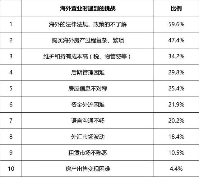 在获取海外房产投资信息方面,“朋友亲戚推荐”是他们最信任的渠道,占比28.2%。但是,“投资地相关的法律法规、政策”等同样也是朋友亲戚的盲点,所以, 在被问及“购置海外房产遇到的困难”时,高净值人群普遍认为“对海外当地的经济与法律环境不了解”是进行海外房产投资的最主要挑战,该部分人群占比高达六成。同时相比投资国内房产来说,购买海外房产时复杂和繁琐的过程以及较高的维护与持有成本,也给他们带来了一定的困扰。因此,一些可以提供海外投资房产“一站式”服务的渠道,将成为高净值人群进行海外置业的一大需求。