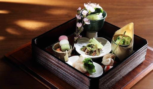 怀石料理:在日本料理中怀石料理是格调最为讲究的一种料理,无论是烹饪方法,还是外观,都极尽细腻。怀石料理重视季节感,追求和发挥食材独特的风味。怀石料理以保留食材的原味为长,每道菜的分量不多,但从食材到器皿都十分讲究色调的搭配,食材的切法、装饰,以及器皿上却无处不在演绎日本文化的美感。热食菜点趁热摆盘,冷食菜点则盛在事先预冷的器皿中。