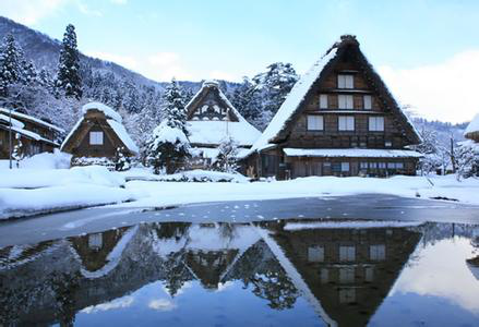 白川乡地处岐阜县的西北部,从江户时期就开始建造,这里的建筑最为有趣的就是独特的屋顶造型,尖尖的样子非常有特点,远远看上去非常像是正在对合的手掌,所以也被人们称作“合掌”村落。之所以将屋顶设计成这种尖尖的样子,是因为这里的冬季降雪量非常大,要想让积雪不要长期堆积,就要用这种造型的屋顶来帮助大雪滑落,而且屋顶内部的空间可以用来养蚕或者存放粮食,空间利用非常高效,还被列入世界文化遗产。